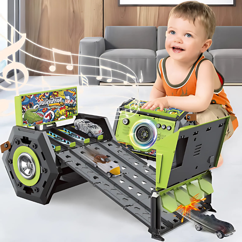 Discover the excitement of real racing with RaceGo, the ultimate portable track set with lights and music that transforms playtime into an adrenaline-pumping adventure, inspiring your child to dream big and race towards endless fun and development!
