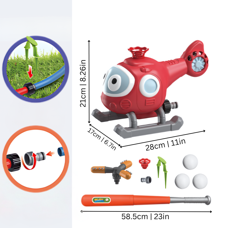 With SplashBall, the action never stops. Switch between two dynamic sprinkler heads to mix things up. The water column nozzle transforms your yard into a baseball training camp, perfect for those home-run swings. Or, attach the 360° rotating nozzle and watch your kids light up as they run through gentle, cooling sprays. It’s like having a water park right at home!