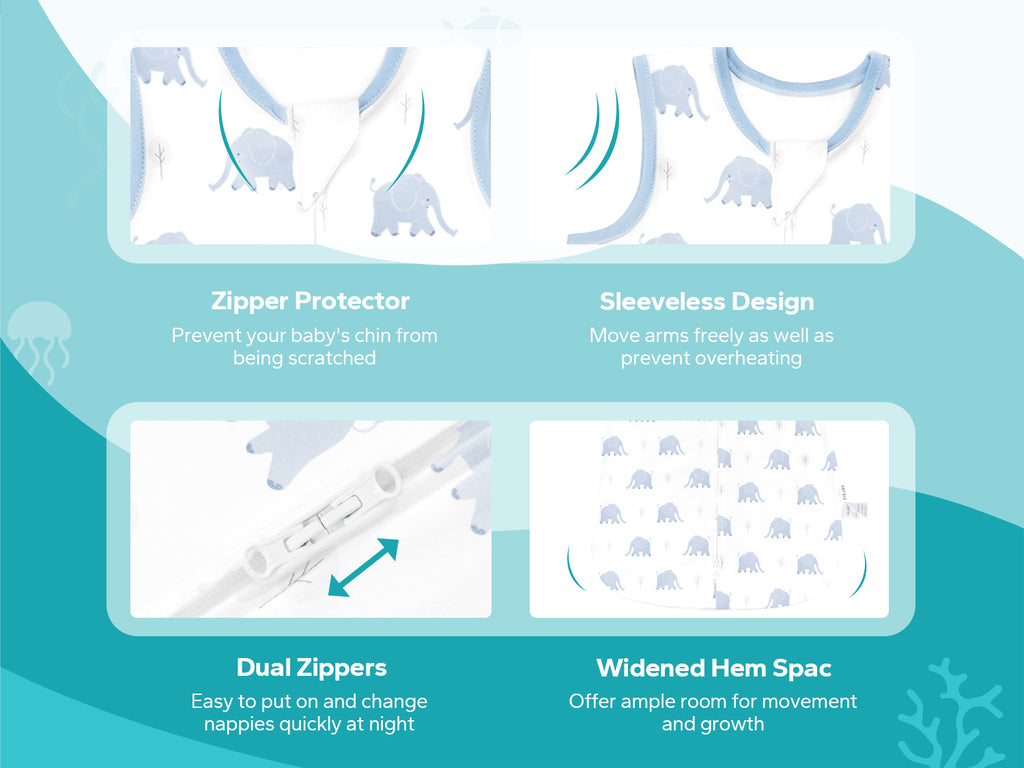 • 【Complete Peace of Mind ❤】With our newborn sleep sack, you can rest easy knowing that your baby is sleeping in a safe and cozy environment. The zip guard keeps your little one's neck and chin protected, while the bottom zipper cover ensures they won't accidentally unzip themselves. Say goodbye to worries about loose blankets or tangled bedding and welcome a peaceful night's sleep for both you and your little one.