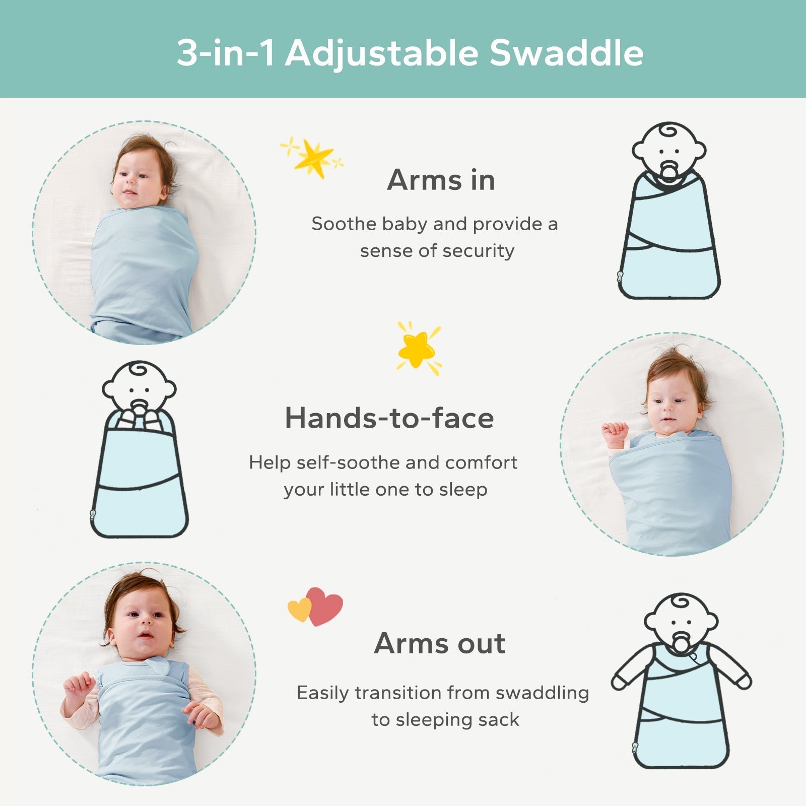 • Ideal for Gifting:Certificated with sustainability feature OEKO-TEX STANDARD 100, this wearable swaddle is best for baby shower gifts, registry must-haves, and hospital bag essentials. Suitable for newborn boys and girls, this baby sleep sac makes a perfect cotton swaddle for new borns to 12 months. Use as a baby sleep sack, infant wearable blanket, swaddle wrap, or baby pod sleep sack. It's baby-safe, eco-conscious, and parent-approved