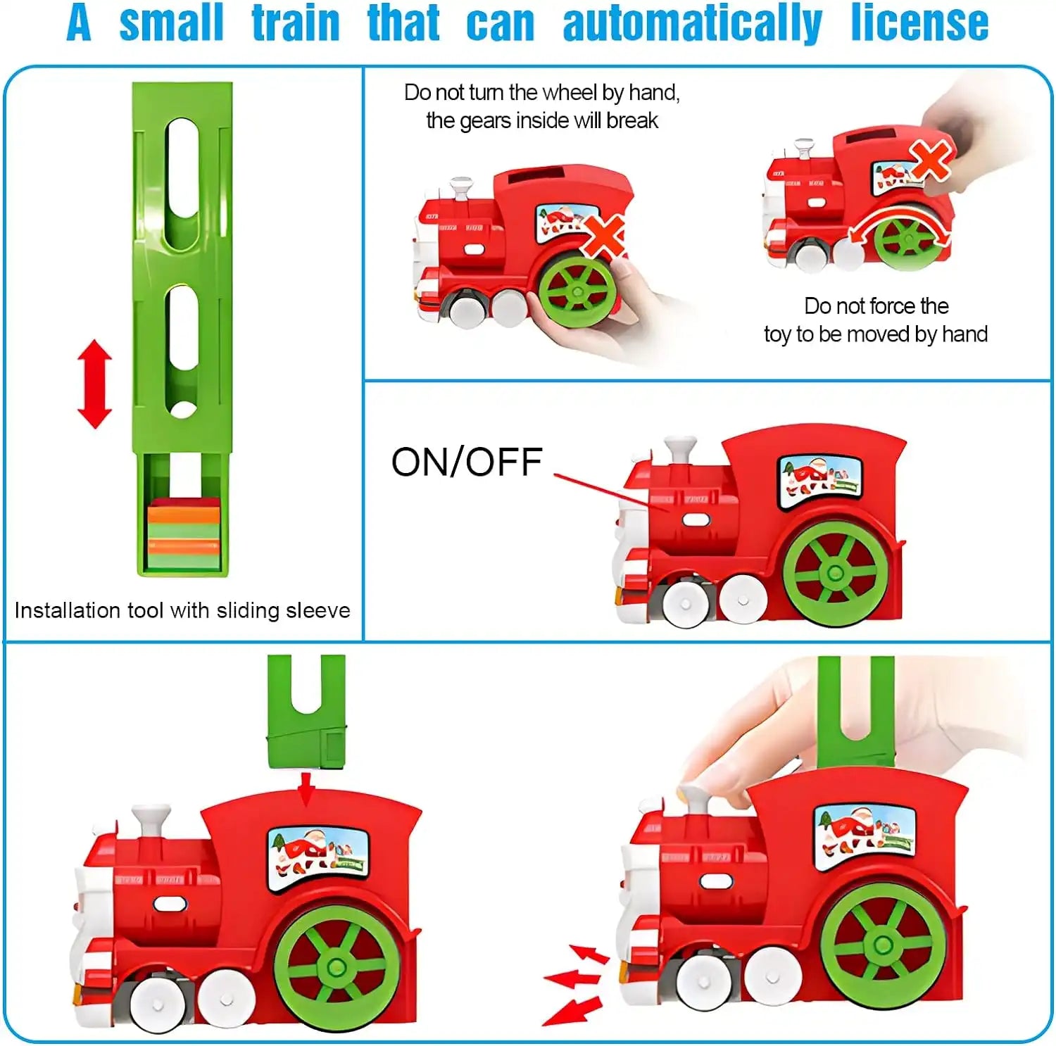 • Start Domino Challenge! -- Every child will be attracted to dominoes and electric train toys, including adults like us lol. This domino train is sure to become a favorite of children, with the help of the electric train, the dominoes are arranged one after the other.Then you knock down the first domino, and a chain reaction occurs and they fall one after the other.