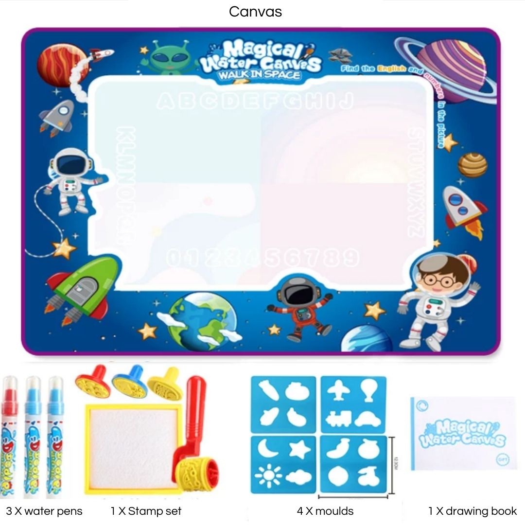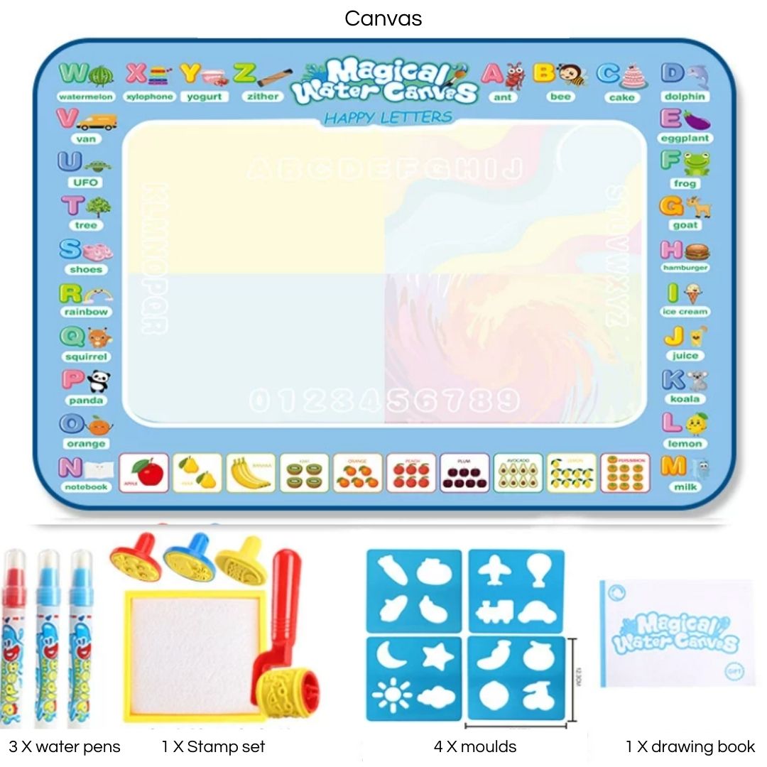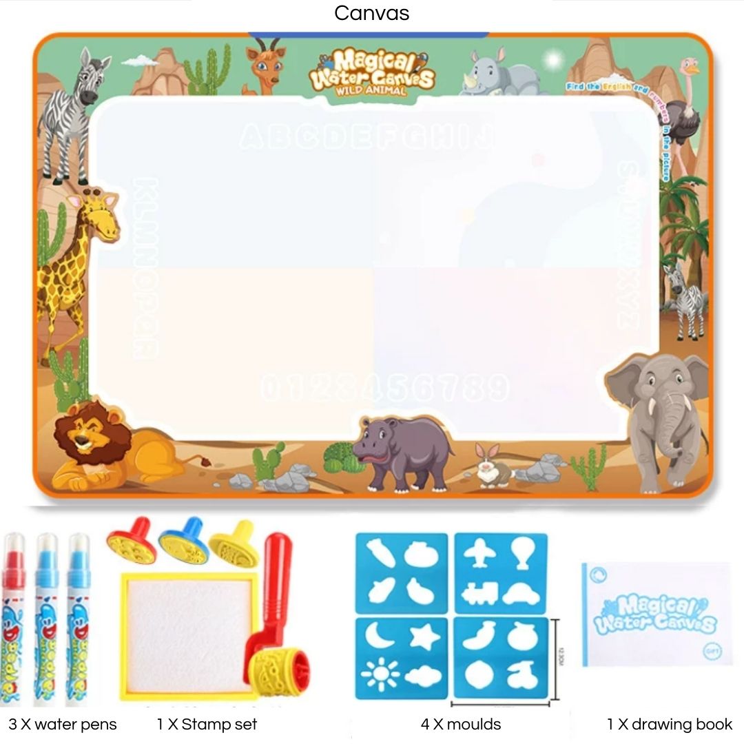 Unleash your child's creativity with the Magical Water Canvas! This innovative, mess-free art canvas allows kids to create stunning artwork using just water. With the prints disappearing as the water dries, it offers endless fun and creativity. Safe, reusable, and easy to clean, the Magical Water Canvas is the perfect way for kids to explore their artistic side without any mess.