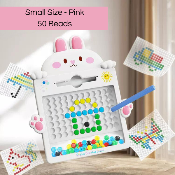 Introducing Magnetdoodle, the ultimate magnetic drawing board that captivates children's imaginations! With its powerful magnetic pen, kids can effortlessly control colorful beads to create stunning artworks on the fully covered board. The set includes reference pictures for easy guidance, promoting artistic interest, focus, and fine motor skills. Let their imagination run wild as they develop color recognition, master pen grip, and unleash their creativity. The adorable bunny design adds an extra touch of cuteness. Get ready to witness your child's artistic journey unfold with Magnetdoodle!
