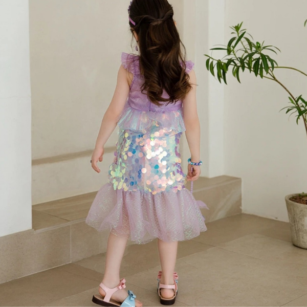 Introducing our enchanting "Mermaid Dream Costume," the perfect attire for your child's magical adventures under the sea or at costume parties. This shimmering mermaid princess dress features a sparkling sequined fishtail design that will ignite your child's imagination. Crafted with comfort in mind, it's made from high-quality materials that allow for easy movement, ensuring endless hours of joy and play. Dive into a world of fantasy and wonder with this exquisite mermaid costume that will make your child feel like a true underwater princess.