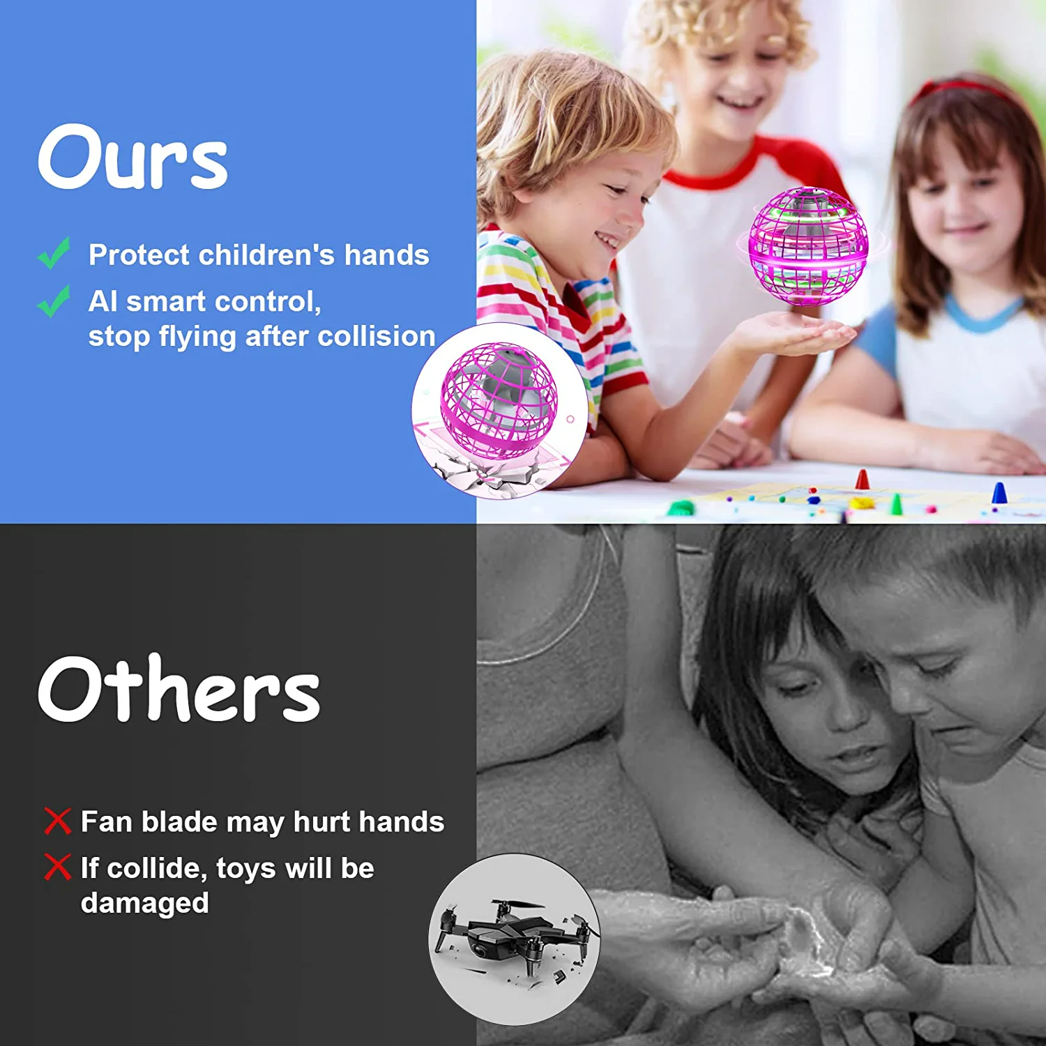 The PANOBall is a cool flying toy that can find its way back to you with no remote. With different throwing angles and speeds, the flying ball drone can achieve different flight routes and skills, as well as different smooth flight modes and boomerang effects.